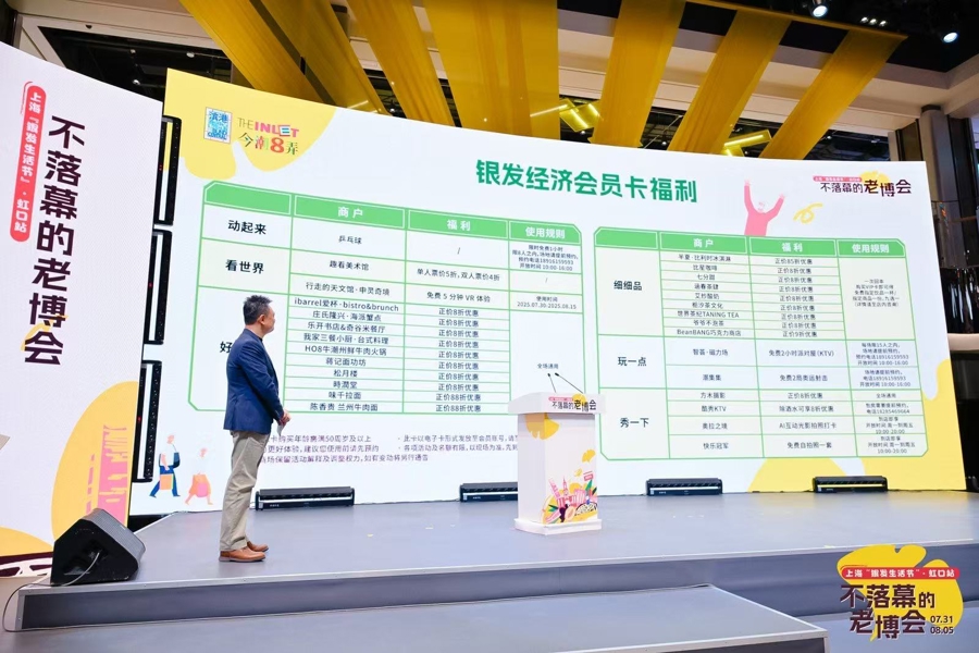 活动期间,滨港商业中心面向50周岁以上的会员推出了14天“银发经济会员卡”,售价9.9元。商场负责人介绍,该会员卡除了包含餐饮折扣券抵用券之外,还特别联动相关商户推出乒乓球、KTV、自拍等老年人热衷项目的免费体验券,以及美术馆、VR馆、射击等年轻人喜爱的潮流项目折扣券,“以文旅商体展联动的形式,让老年群体享受‘银发嘉年华’”。