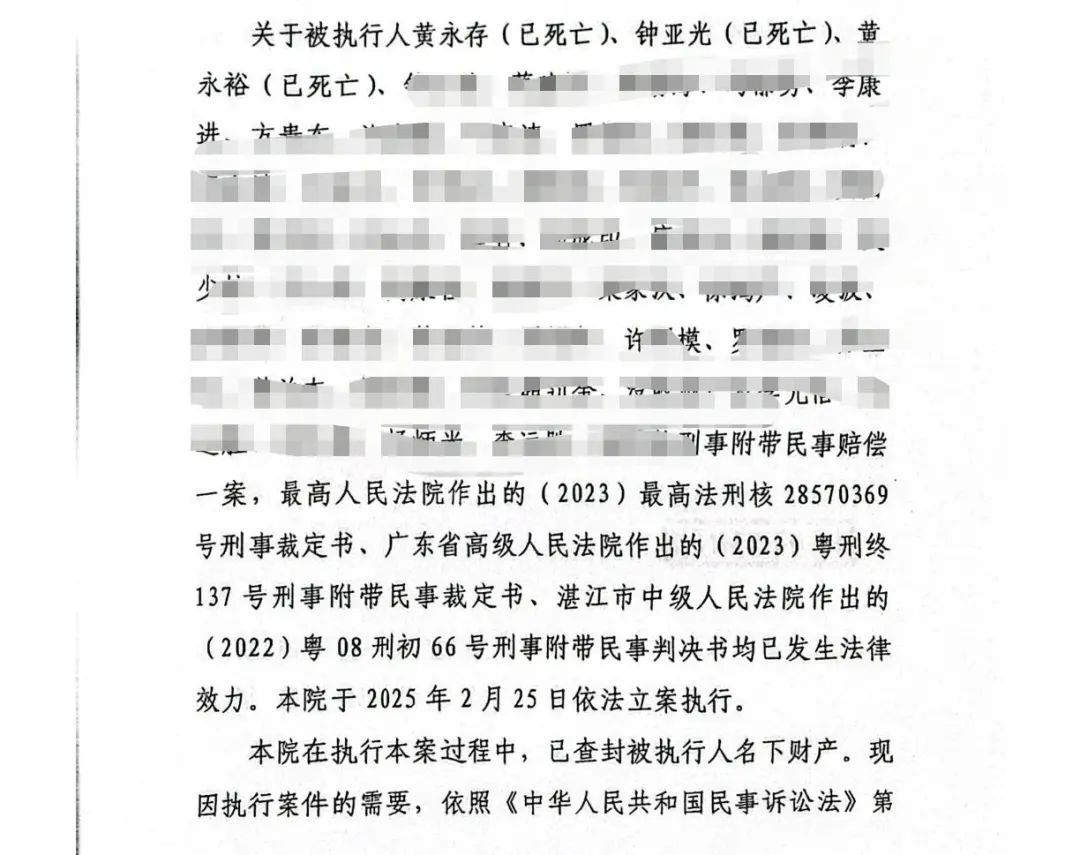 ▲被执行人黄永存、黄永裕、钟亚光已死亡